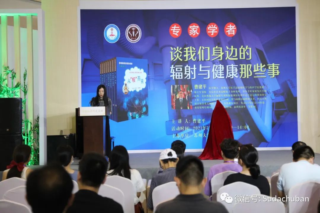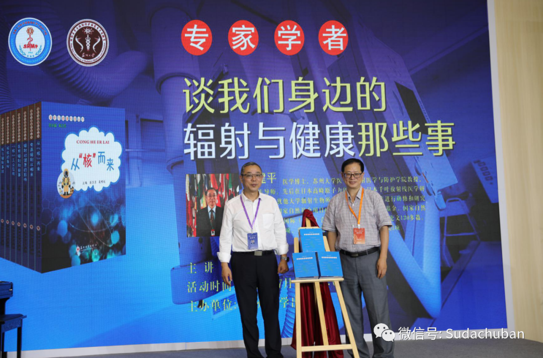 活动上,苏州大学放射医学与辐射防护国家重点实验室曹建平教授和luck18新利·(中国体育)官方网站盛惠良社长共同为“辐射与健康科普丛书”首发揭幕。